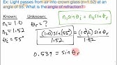 Refraction 2 Of 5 Snell S Law Calculating Angle Of Refraction And Angle Of Incidence Youtube